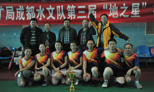 經(jīng)過兩天激烈比賽,院第三屆“地之星”杯羽毛球比賽今天中午在成都市體育中心落下帷幕。在決賽中,四強隊伍激勵拼殺,最終水文公司在決賽中發(fā)揮穩(wěn)定,戰(zhàn)勝巖土公司奪得本屆羽毛球賽冠軍,巖土公司獲得亞軍,地質(zhì)公司獲得季軍。