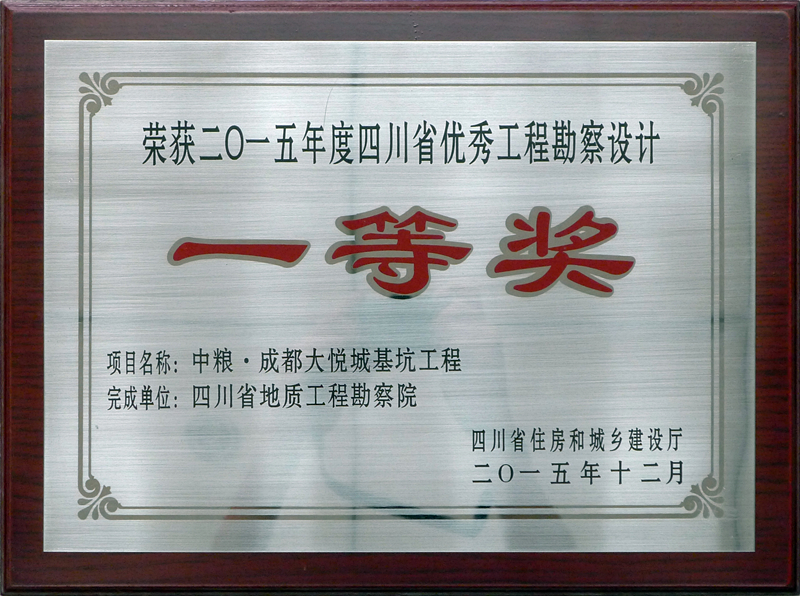 國(guó)道213、317線都江堰至汶川公路廟子坪岷江特大橋詳細(xì)勘察階段工程地質(zhì)勘察項(xiàng)目獲得全國(guó)優(yōu)秀工程勘察設(shè)計(jì)行業(yè)獎(jiǎng)二等獎(jiǎng),成都水文隊(duì)生產(chǎn)科研用房和經(jīng)濟(jì)適用房(5幢綜合樓)水源熱泵中央空調(diào)工程水文地質(zhì)勘察、中糧·成都大悅城基坑工程獲得省工程勘察設(shè)計(jì)“四優(yōu)”一等獎(jiǎng),歐尚購(gòu)物中心工程勘察、松潘縣川主寺鎮(zhèn)第二自來水廠水源地綜合水文地質(zhì)勘察報(bào)告(山巴——川盤橋段)獲得省工程勘察設(shè)計(jì)“四優(yōu)”二等獎(jiǎng),潤(rùn)慶·山予城一期巖土工程勘察報(bào)告獲省工程勘察設(shè)計(jì)“四優(yōu)”三等獎(jiǎng)。