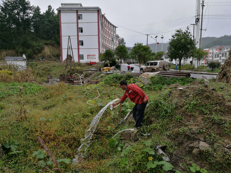 專業(yè)引領(lǐng),探采結(jié)合,成井出水。項(xiàng)目組充分發(fā)揮我院水文地質(zhì)、水文物探、鉆探多專業(yè)優(yōu)勢,技術(shù)人員協(xié)同攻關(guān),首先通過地質(zhì)分析尋找富水地段和儲水構(gòu)造。然后布置物探進(jìn)行勘查。最后針對工作區(qū)地層巖性和地質(zhì)構(gòu)造特點(diǎn),進(jìn)行成井設(shè)計(jì),并按設(shè)計(jì)進(jìn)行施工。項(xiàng)目組設(shè)計(jì)的4口探采結(jié)合井已全部完成,成井率100%。尤其是布設(shè)在貴州省赫章縣安樂溪鄉(xiāng)鄉(xiāng)政府的探采結(jié)合井(編號:ZK29),該井井深160.2米,水位位于井口,微承壓,出水量500立方米/天左右時(shí)的穩(wěn)定降深不到30米,該井可補(bǔ)充安樂溪鄉(xiāng)集中供水,惠及人口近萬人,有效的緩解了安樂溪鄉(xiāng)群眾飲水困難的問題,受到了安樂溪鄉(xiāng)政府和赫章縣國土資源局的高度贊揚(yáng)。