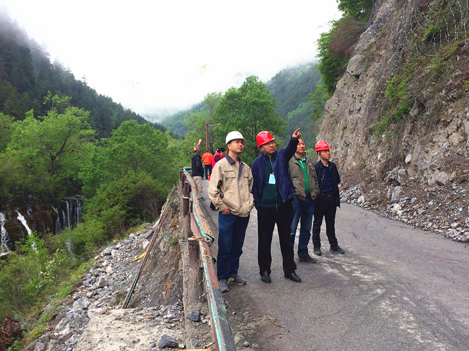 險情發生后,九寨溝國家級自然保護區管理局劉春龍局長、業主代表澤軍、我院九寨溝89處地災治理項目部現場總協調人陳新、二標段執行經理何海清緊急趕到現場,共同商討對于該危巖的排危方案。
