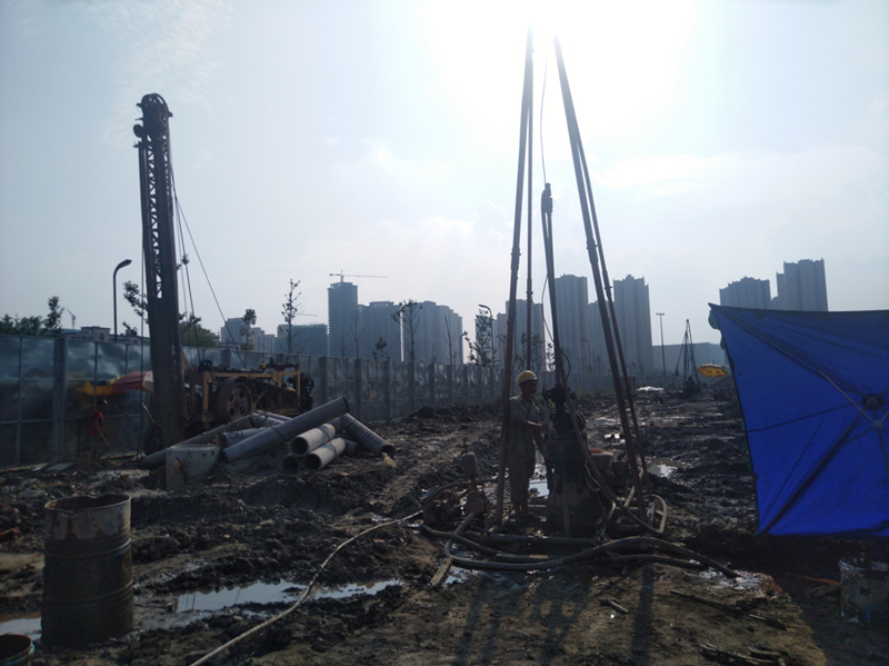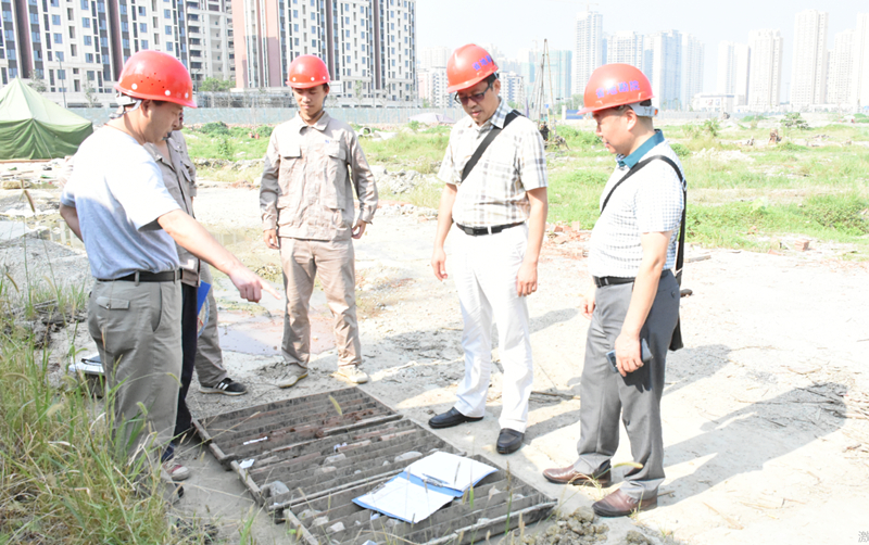 為確?!叭A府279 項目”巖土勘察的順利完成,及時向建設單位、設計單位、有關施工單位提供全面的、可靠的、科學的勘察成果,我院水文地質工程公司先后選派五名高級工程師和其他現場管理、地質技術人員組成項目組駐扎現場,克服工期緊、高溫暴雨以及鉆機荒等各種因素的影響,加班加點趕進度;院長安世澤、院黨委書記謝大軍以及水文地質工程公司領導、技術顧問、生產管理部門人員等先后前往項目一線慰問作業人員并進行指導,全力協助項目部解決施工過程中遇到的具體問題。